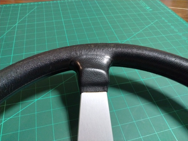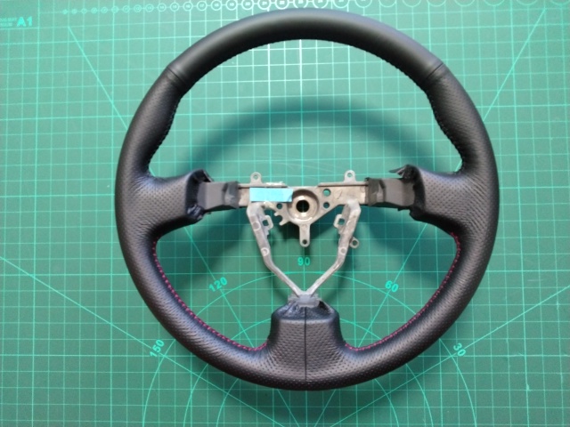 ・ステラカスタム純正ウレタンへの革巻<現状溝及びパンチング模様パテ埋下地整正&新継目溝堀&上下AL黒&左右DP黒&千鳥(赤糸)仕様です。>