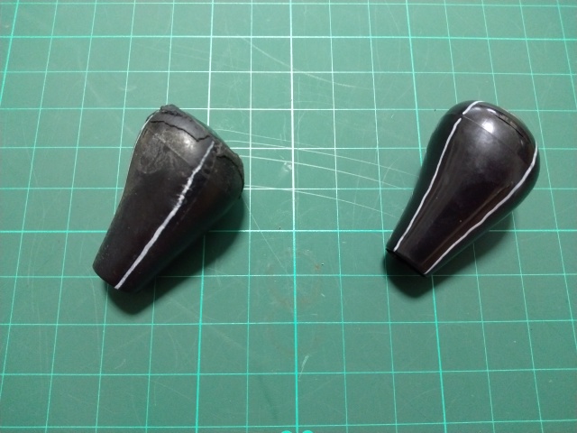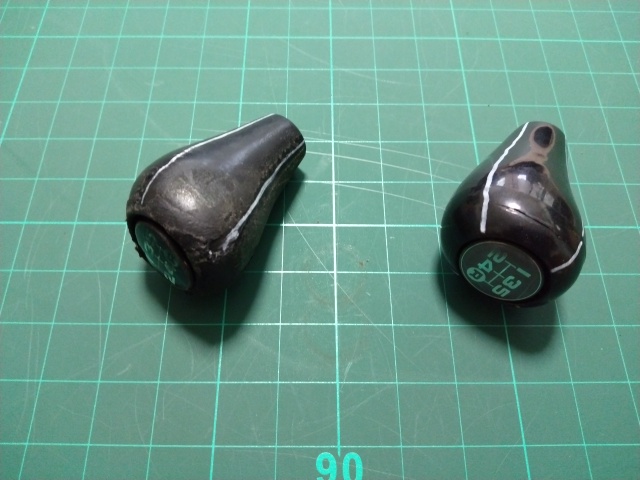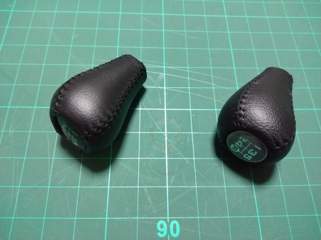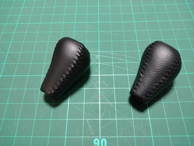 ・スカイラインシフトノブ<3分割巻巻替、ステッチ新設:中央AL黒&左右DP黒&現状ステッチ無し⇒千鳥(黒糸)仕様です。>~過去に巻き替えさせて頂いたハンドル(施工例24/3月22日更新分)に革色他仕様を合わせました!( ^^) _U~~