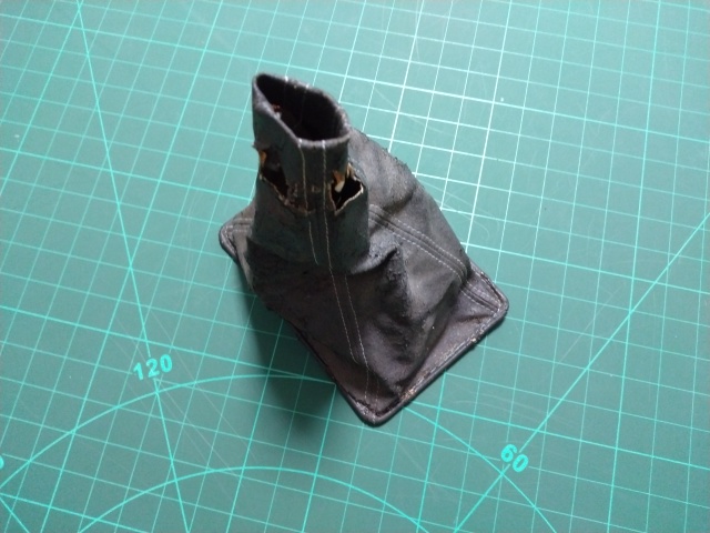 ・船舶用<6分割巻替:下地ウレタンひび割れ補修&&上下、左右(下部)AL黒&左右(上部)DP黒&千鳥(白糸)仕様です。>~一見、傷みは軽度の様に見えますが内周革合わせ目を見れば判る通りウレタン部の経年劣化が酷く、大変な作業となりました・・・(*_*;