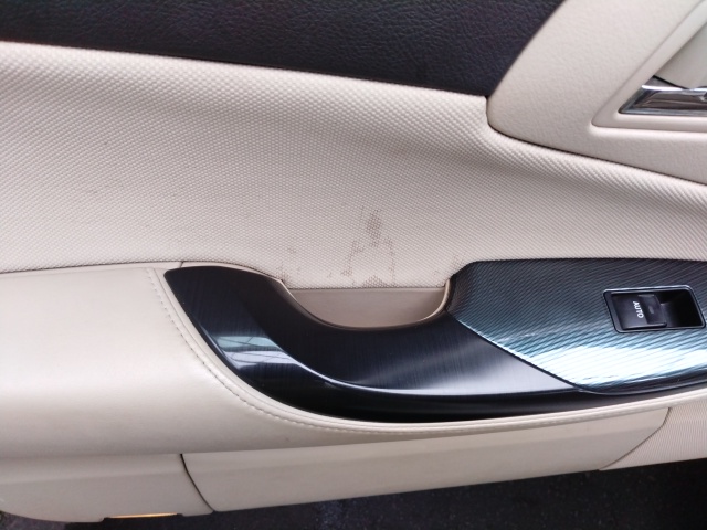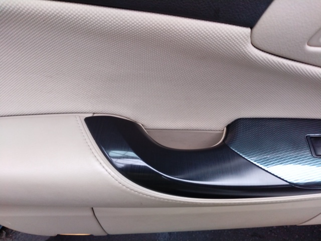 ・CX-5<運転席ドアトリム白革取っ手部のクスミ汚れ除去、清掃作業です。>