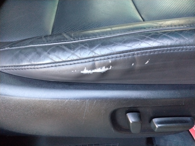 ・ヴェルファイア(本革運転席右側面合皮部の中破損リペア)~表皮の薄皮が剝がれる症状は、合成皮革の特徴です(*_*)
