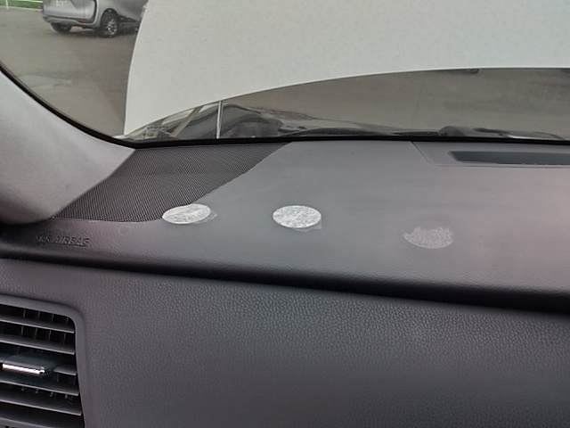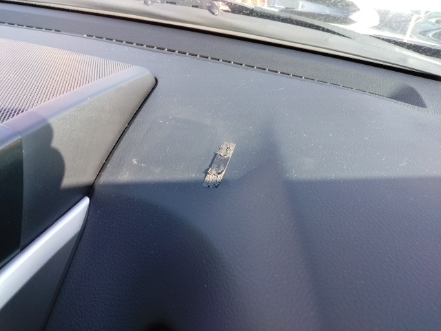 ・BMW X3<ダッシュボート上のレーダー探知機取り付け部のはみ出た粘着テープの除去、清掃及び設置し直し作業です。>