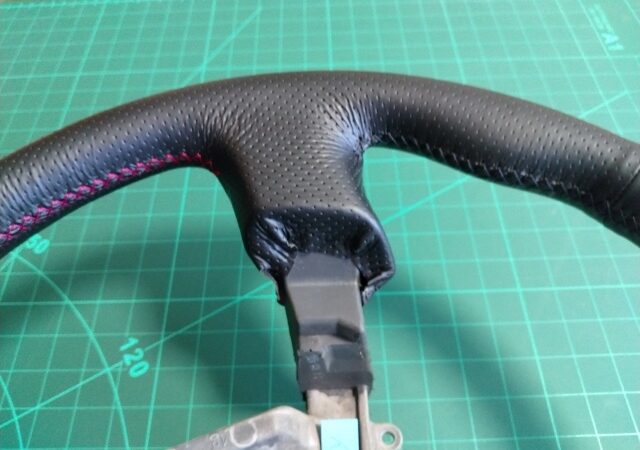 ・RX-7純正ナルディ(上下AL黒革&左右DP黒革&千鳥ステッチ(赤糸)仕上げ です。